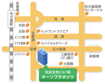 有限会社オーソプラネッツ 名古屋市中村区名駅南2-14-19 住友生命名古屋ビル1階 TEL:052-582-6511